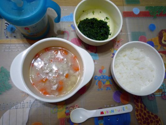 そんなこんなで、本日復活しました。まだ鼻水が出るが、まぁ大丈夫だ。で、本日の離乳食メニューは、
